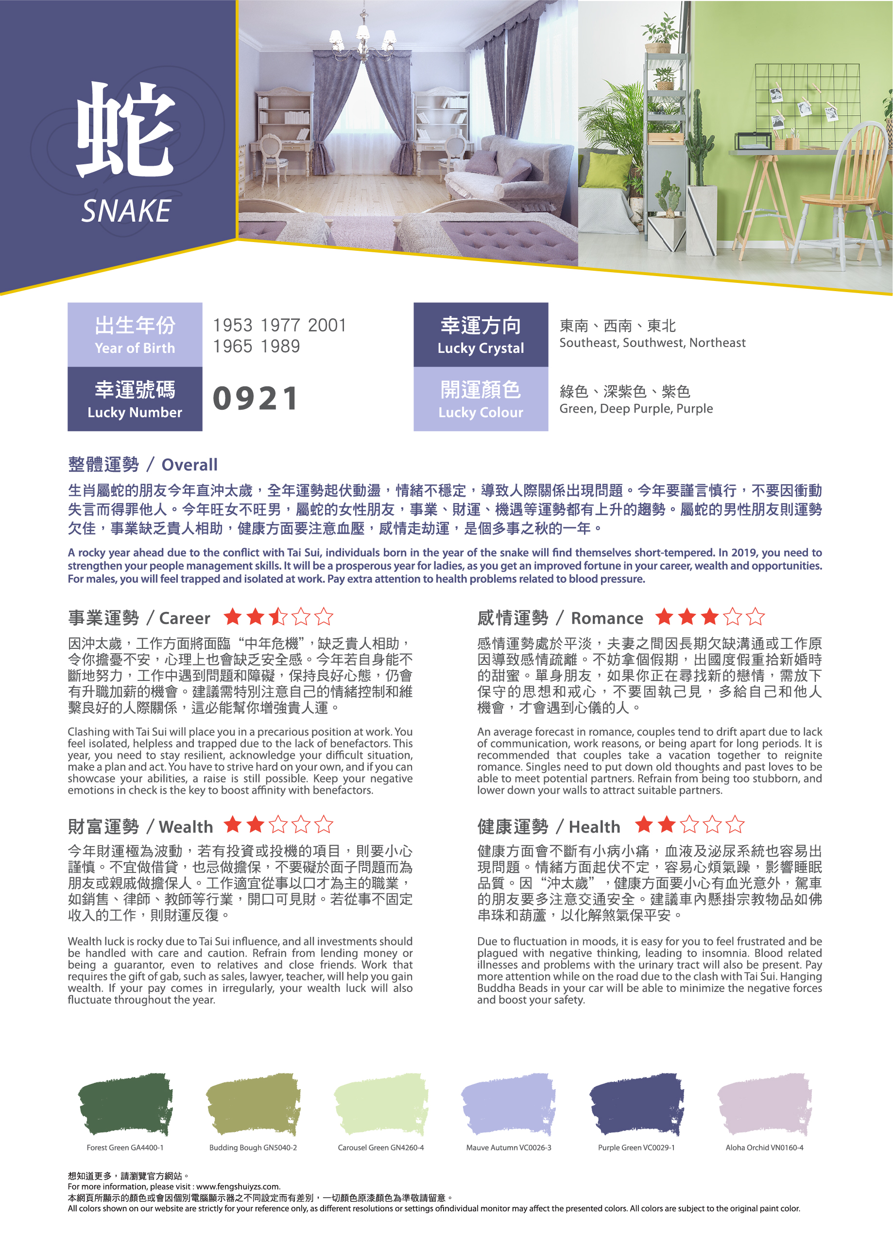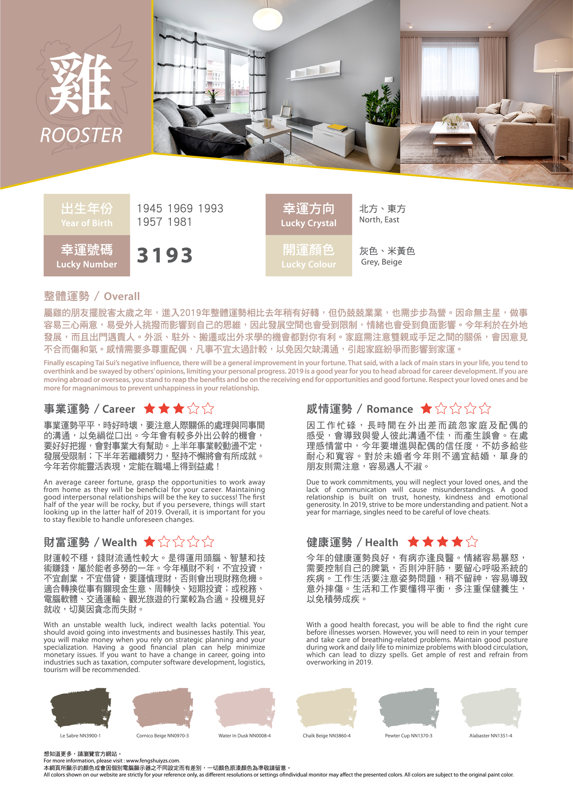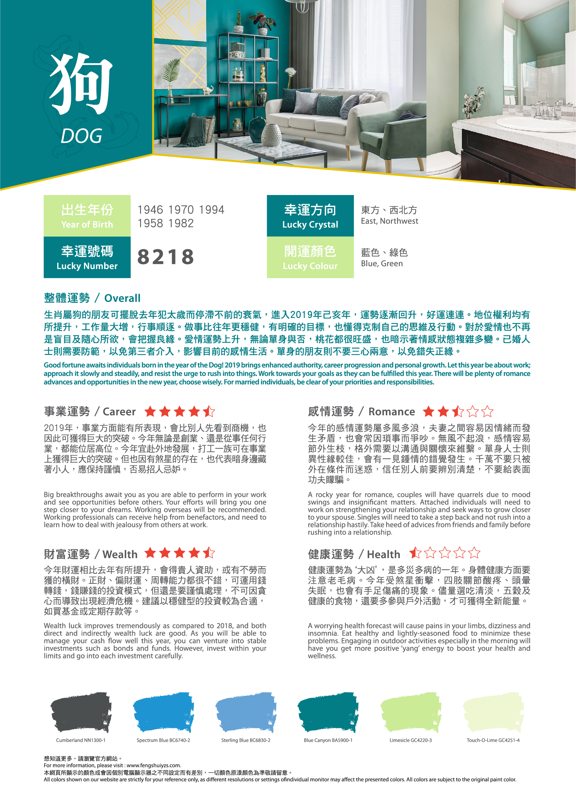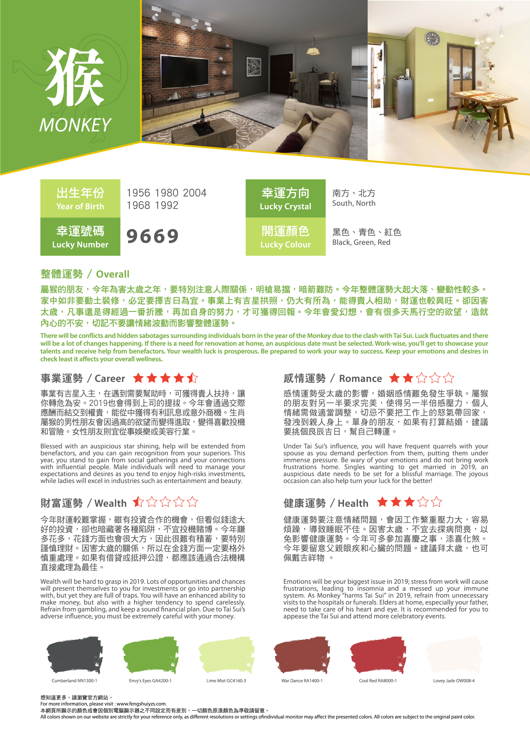 農曆新年就快到來,想知道在事業(yè)、感情、財富、健康方面有什麼要注意?找出屬於您的吉祥顏色,運用適當的色彩,可給人舒適愉快的生活空間,為新一年帶來好運!有溫度的色彩,為居家繽紛上妝,好運一整年。立即看看2019年豬年運程色彩吧!?農曆新年就快到來,想知道在事業(yè)、感情、財富、健康方面有什麼要注意?找出屬於您的吉祥顏色,運用適當的色彩,可給人舒適愉快的生活空間,為新一年帶來好運!有溫度的色彩,為居家繽紛上妝,好運一整年。立即看看2019年豬年運程色彩吧!?